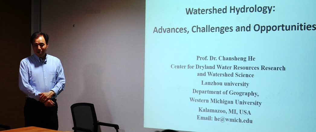 徐宗学教授主持了本次学术报告会,首先对贺缠生教授的到访表示热烈欢迎。贺教授首先介绍了美国乃至全球有关的水问题,然后,以自己多年来在美国认识和处理水问题的经历为基础,结合最近发生的Flint River水污染案例,介绍了美国水文水资源领域的热点问题,以及这些问题背后可供深入研究的科学问题。其后,介绍了流域水文不同水文过程中新出现的前沿技术,重点分析了卫星遥感技术在降水、蒸散、土壤水等领域的应用前景,指出更多的遥感技术应用将成为流域水文研究的重要助力。最后,详细介绍了贺教授在黑河流域进行的土壤采样及相关研究,包括如何通过采样设计应对水文模拟中的土壤空间异质性、利用野外土壤采样得到的数据在黑河流域上游进行模拟等内容。报告还针对如何将点尺度数据应用到空间尺度模拟的问题,结合他的团队在黑河上游的研究,分析了点尺度数据转换的常用方法以及各自的优缺点。报告结束后,各位老师和同学们与贺缠生教授围绕报告内容进行了深入的交流,特别是对水文水资源热点问题和点尺度数据转换问题展开了热烈的讨论。