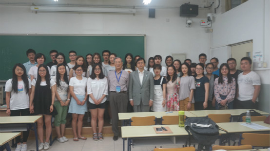 徐宗学教授主持了本次学术报告会。首先,徐宗学教授对竹内邦良教授的来访表示了热烈的欢迎,并对竹内邦良教授的学术背景以及任职情况进行了简要介绍。随后竹内邦良教授分别做了题为“Water-related disaster management in Japan and transdisciplinary approach”、“Principles of disaster management”、“Industrial water recycling promoted by groundwater regulation and pollution control: A success story of Japan”的三个报告。报告结合日本的地理位置、气候特征等,对日本的防洪经验、风险管理措施以及地下水超采和污染问题做了详细的介绍。报告结束后,老师和同学们围绕着报告内容进行了深入的交流和探讨。最后,徐宗学教授对竹内邦良教授的精彩报告表示感谢。课程结束前,竹内邦良教授还愉快地跟与会师生合影留念。