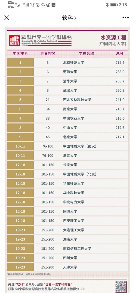 软科世界一流学科排名2020-水资源工程网址://www.zuihaodaxue.com/subject-ranking/water-resources.html