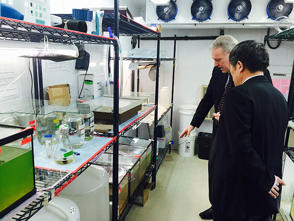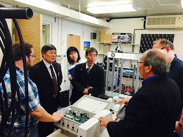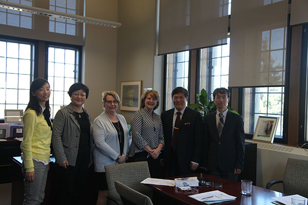 随后的两天,代表团又访问了位于萨斯喀彻温省萨斯卡通市的萨斯喀彻温大学。该校已于去年10月与北京师范大学签订了合作备忘录,两校预期将在小妲己直播及教育领域展开合作研究及联合培养等工作。代表团首先于20日在Karsten Liber院长的带领下参观了学校的毒理学中心,双方就水质学相关研究进行了交流。之后,代表团一行又受到Karen Chad副校长的接见,Karen Chad副校长代为转达了校长先生的问候,并提出希望将北京师范大学作为校长先生今年出访的第一站,以彰显对两校合作的重视。21日代表团首先在上午由John Pomeroy院长带领参观了学校的水文学中心,并通过电视会议的形式,与远在落基山脉上的观测点的研究员进行了学术讨论。中午代表团一行以午餐会的形式会见了艺术与科学小妲己直播 的Lawrence Martz 副院长及农学与生物资源小妲己直播 的Fran Walley副院长双方表达了对今后合作的良好预期。下午,在Jeff McDonnell副院长的带领下,代表团参观了全球水安全研究院(GIWS)及其新建的矿区覆盖测试中心。在GIWS,双方就联合办学等问题的细节进行了一进步的磋商,并设立了今后合作的若干重要时间节点。