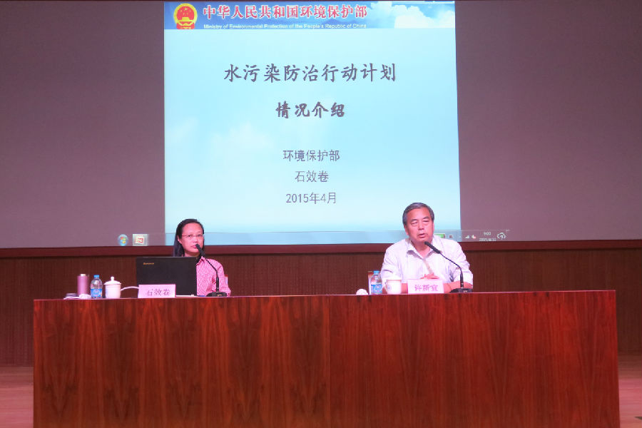 2015年4月16日"水十条”重磅来袭,是我国环境保护领域的又一重大举措,充分彰显了国家全面实施大气、水、土壤治理三大战略的决心和信心。石效卷处长主要从"背景情况、起草过程、主要内容、亮点解析”四个方面为我们诠释"水十条”。该计划共计十条35项具体措施,把政府、企业、公众攥成一个拳头,向水污染宣战。石处长强调它是继"大气十条”之后,我国出台的又一项重大污染防治计划,涵盖了对工业水污染、城镇水污染、农业污染、港口水环境、饮用水、城市黑臭水体等问题的治理。她指出"水十条”不仅以量化指标进行了细化要求,规定了截止时间,还首次明确了各地方和部委的职责清单,更加注重责任落实。讲座最后,石处长强调水是万物之母、生存之本、文明之源。良好的水环境,是美丽中国建设的关键基础,是生态文明建设的应有之义。只有蓝天常在、绿水常在、青山常在,才能实现伟大的中国梦!