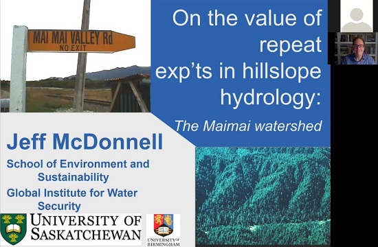 首场报告于北京时间10月10日由国际著名的水文学家、加拿大萨斯喀彻温大学环球水安全研究所副所长Dr. Jeffrey McDonnell教授主讲。Jeffrey教授是加拿大皇家科小妲己直播 院士、美国地球物理学会(AGU)水文分会主席,在Nature、Science、Nature Geoscience、Nature Sustainability和Nature Climate Change等顶级期刊上发表论文20余篇,是世界上引用率最高的水文学家。