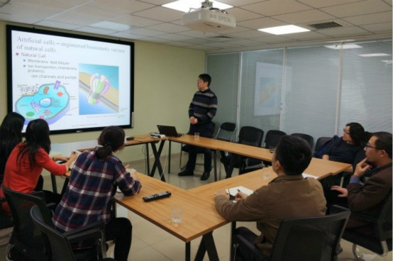 徐剑老师的报告深入浅出,为我们介绍了多学科知识相结合的仿生学污水发电单元的设计及研究,增强了我院师生对生物纳米技术这个交叉学科的了解以及科研兴趣。报告结束后,各位老师和同学们与徐剑老师围绕报告内容进行了深入地交流与探讨。